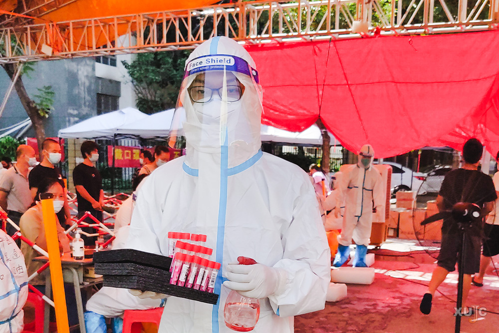 游仁杰是我校機(jī)電工程學(xué)院2021屆校友,剛畢業(yè)3個(gè)多月。他所在的公司廈門蒙發(fā)利電子有限公司位于廈門市同安區(qū)新民鎮(zhèn)。在這波疫情中,新民鎮(zhèn)被劃為高風(fēng)險(xiǎn)地區(qū)。當(dāng)看到公司發(fā)布的志愿者招募信息后,游仁杰豪不猶豫地報(bào)了名,前往同安前埔里核酸采集點(diǎn),協(xié)助核酸檢測(cè)工作的開展。他說:“一方面,之前去做核酸時(shí),我感受到了醫(yī)務(wù)人員和志愿者的辛苦,希望有機(jī)會(huì)能幫上忙;另一方面,我們所在的新民鎮(zhèn)是疫情的重災(zāi)區(qū),我想盡一份力,希望疫情早點(diǎn)結(jié)束。”