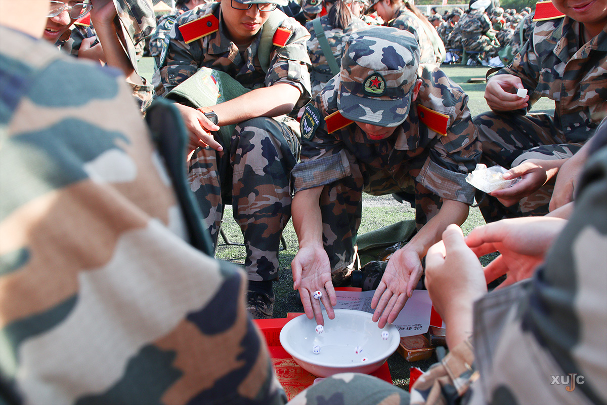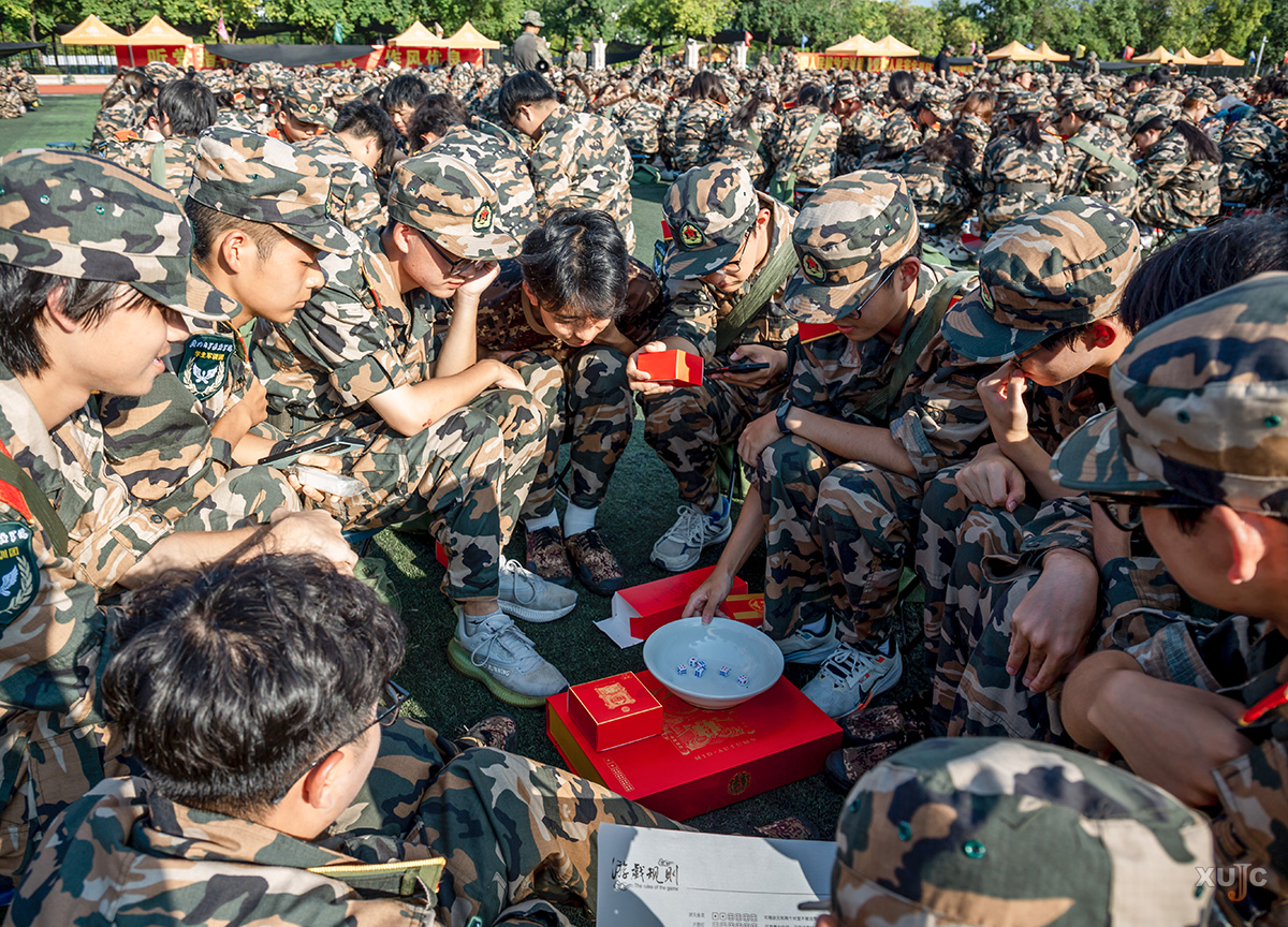 9月16日下午,北區(qū)田徑場(chǎng)上熱鬧非凡,五千余名2025級(jí)身著軍訓(xùn)服的新生一圈圈圍坐在此。骰子碰撞聲、驚呼聲、歡笑聲交織出一曲獨(dú)特的軍訓(xùn)交響樂(lè)。