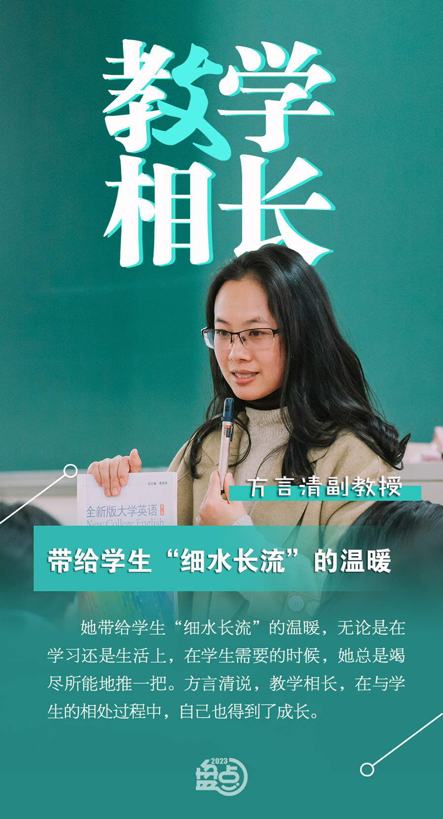 校優(yōu)秀教學獎8次、外研社“教學之星”大賽全國半決賽二等獎、全國高校外語教學大賽福建賽區(qū)二等獎……英語語言文化學院副教授方言清在“嘉園”任教14年,獲得過很多獎項。她與學生之間的關系亦師亦友。而對于學生們來說,她是老師,更是他們的溫柔“方媽”,總是帶給他們“細水流長”的溫暖。