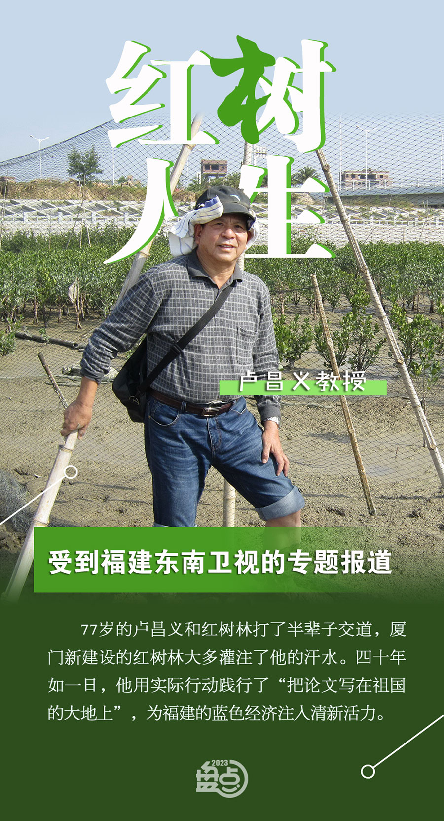 2023年12月22日18:05,福建東南衛(wèi)視播出紀錄片《海洋季風》的“海洋奇跡”專題,報道了廈門大學嘉庚學院環(huán)境科學與工程學院院長盧昌義教授45年來在紅樹林建設、生態(tài)修復方面鮮為人知的故事,播出時長近10分鐘。盧昌義是國務院政府特殊津貼專家、福建省優(yōu)秀專家、盧嘉錫優(yōu)秀導師、廈門市優(yōu)秀教師,他也是嘉庚學院首屆杰出貢獻獎獲獎者。