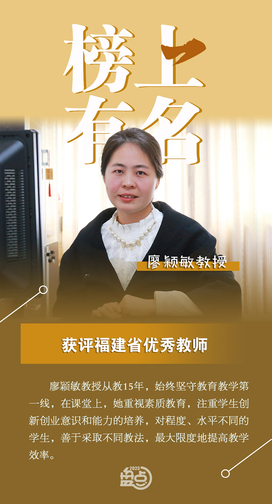 2023年9月8日,福建省人力資源和社會保障廳、福建省教育廳聯(lián)合印發(fā)《關于表彰福建省優(yōu)秀教師和優(yōu)秀教育工作者的決定》。其中,在“福建省優(yōu)秀教師”序列,環(huán)境科學與工程學院副院長廖穎敏教授榜上有名。這是我校教師第六次獲此殊榮(前五次為四位獲“福建省優(yōu)秀教師”稱號,一位獲“福建省優(yōu)秀教育工作者”稱號)。