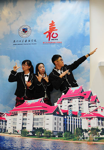“哇,你看,這是照片組成的‘我愛嘉庚學院’。”一步入展廳,特別吸引眼球的是由歷屆畢業(yè)照組成的“我愛嘉庚學院”六個字,校友們可以在這185張畢業(yè)合影中找自己、找回憶。2013屆人文與傳播學院的校友王瀚宇和袁斌提前回到校園,一走進辦學成果圖片展的展區(qū)就被畢業(yè)照片墻吸引了,他們在“學”字里面找到了自己的畢業(yè)照,還開心地談?wù)撝磳⒁姷侥男┗?ldquo;嘉”的同學。2013屆會計系的胡同學說:“成果展十分獨特、大氣,在圖片展中找到了自己與朋友的照片,勾起許多回憶,很感動。”