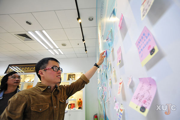 雖然只是開展第一天,然而展廳出口處的留言墻上已經(jīng)貼上了很多溫馨的祝福和留言。“我愛嘉庚”、“每個十周年都回來看一次”、“嘉園,家園,愿意和嘉園一起成長”、“嘉里春暖花開”、“十周年快樂,希望之后在嘉園能夠收獲匪淺”、“‘嘉庚’,我愛您,祝學院越辦越好”……這些留言不僅表達了對學院十周年生日的祝福,更可以感受到眾多嘉庚學子對母校深深的愛意。