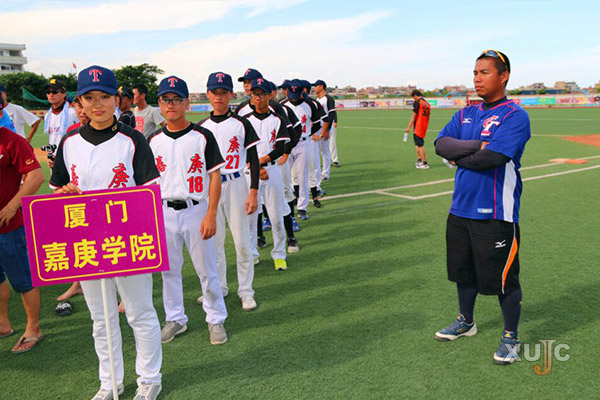 曾士賓(右)帶領(lǐng)嘉庚學院棒球隊參加第十屆“海峽杯”兩岸慢速壘球賽,并獲得季軍
