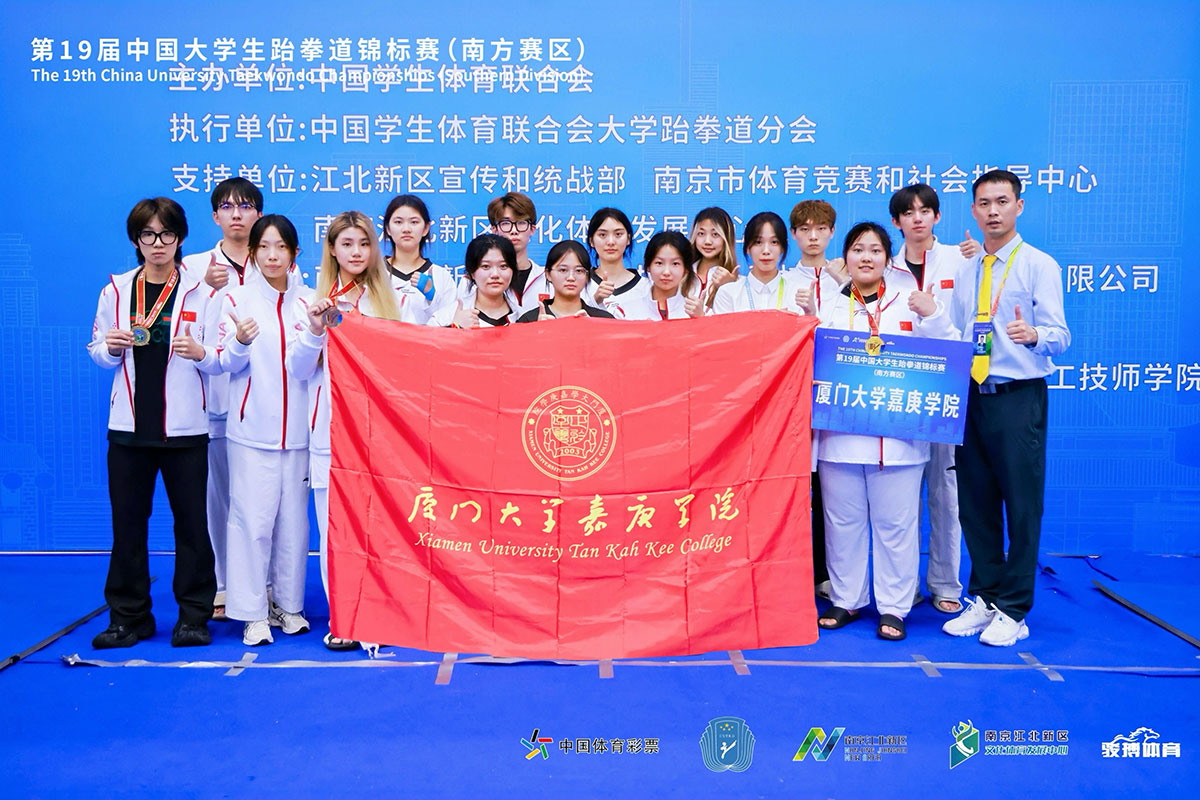 6月7日至13日,第十九屆中國(guó)大學(xué)生跆拳道錦標(biāo)賽(南方賽區(qū))在南京江北新區(qū)大廠體育館舉行。我校跆拳道隊(duì)斬獲甲組競(jìng)技團(tuán)體總分全國(guó)第一,個(gè)人單項(xiàng)獲2枚金牌、2枚銅牌、4個(gè)第五名,8位隊(duì)員憑借優(yōu)異的表現(xiàn)成功獲得全國(guó)總決賽入場(chǎng)券。此外,我校跆拳道隊(duì)榮獲體育道德風(fēng)尚獎(jiǎng),教練張東強(qiáng)獲優(yōu)秀教練員稱號(hào),隊(duì)員吳可昕、宋怡真、竇庚濤獲優(yōu)秀運(yùn)動(dòng)員稱號(hào)。