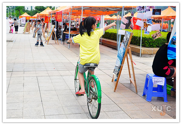 騎著小綠的小朋友,她眼里的一切都是新奇的