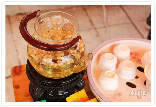 呷一口花茶,覽湖光山色