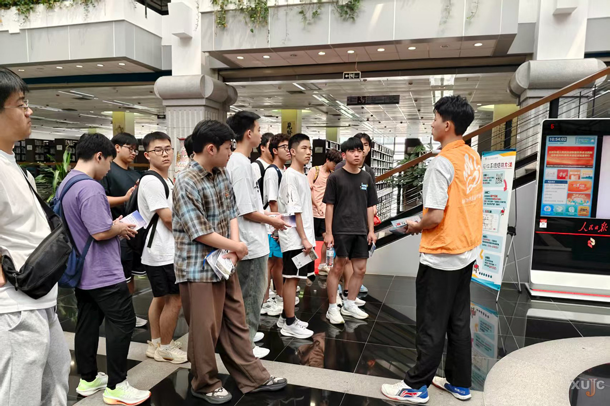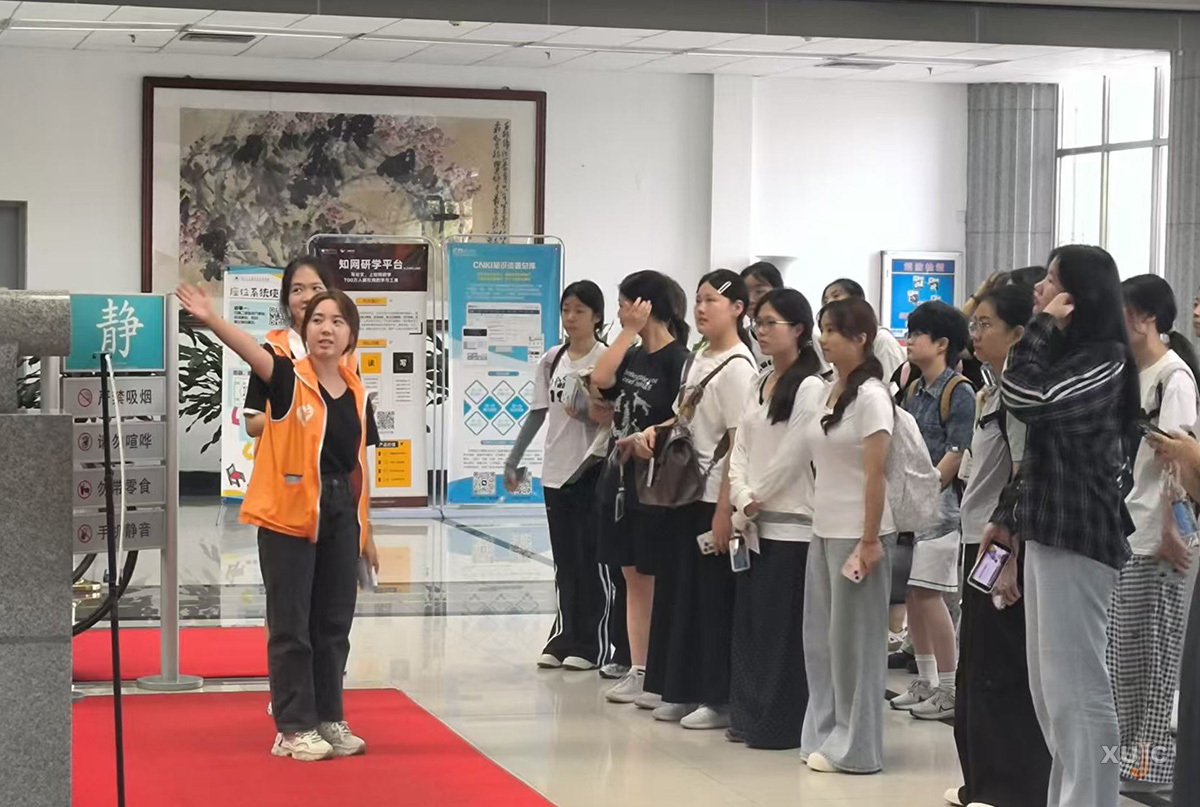 在入館參觀環(huán)節(jié),導(dǎo)覽團(tuán)隊(duì)充分發(fā)揮朋輩引領(lǐng)的作用,帶領(lǐng)新生走進(jìn)圖書(shū)館,細(xì)致講解各功能分區(qū)與文明閱讀規(guī)范,并現(xiàn)場(chǎng)演示刷卡進(jìn)館、圖書(shū)檢索、座位預(yù)約、自助打印等實(shí)用操作。通過(guò)親身體驗(yàn),新生對(duì)圖書(shū)館的資源與服務(wù)有了更直觀和全面的認(rèn)知。