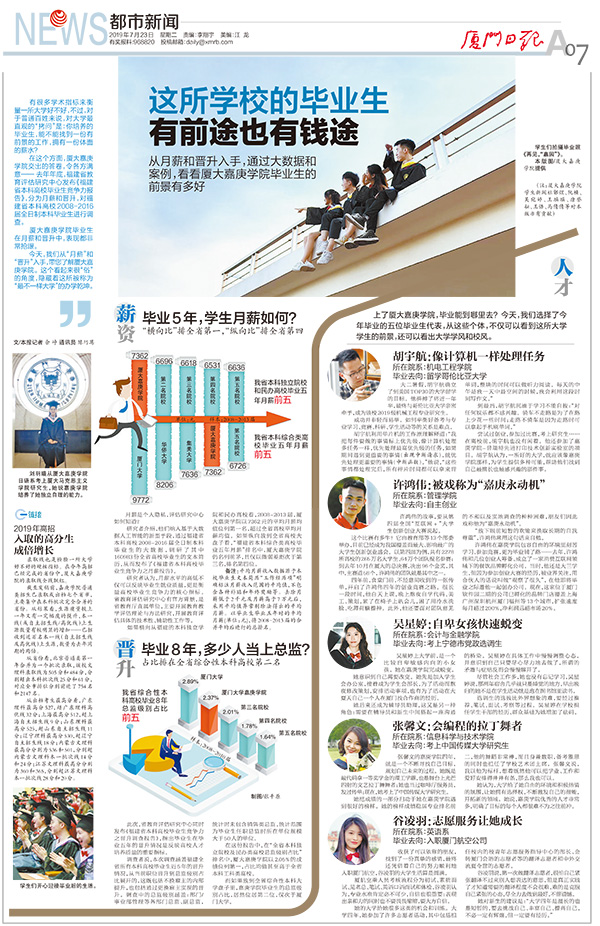 廈大嘉庚學(xué)院畢業(yè)生在月薪和晉升中,表現(xiàn)都非常搶眼。