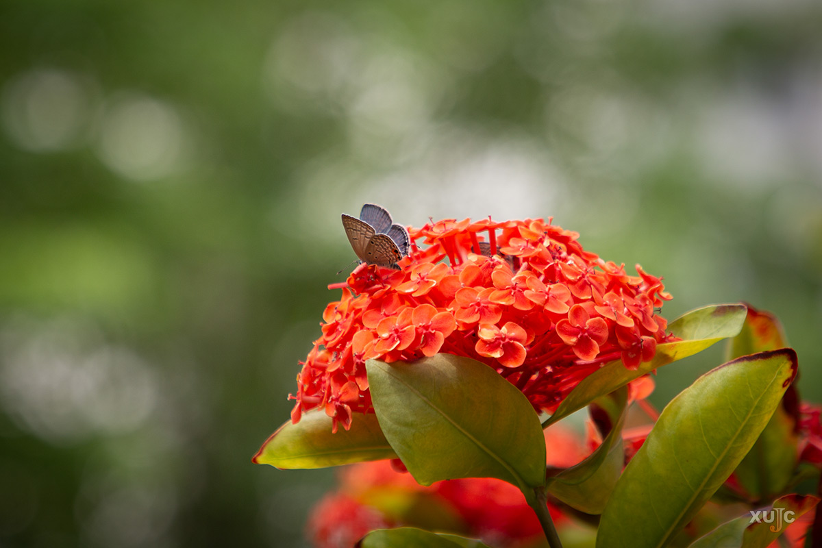 龍船花,花葉秀美,花冠為紅色或紅黃色,花期四季,5月至7月為盛花期,被廣泛用于園林綠化中。花語為爭先恐后,有積極向上的寓意。(朱鮮艷 攝)