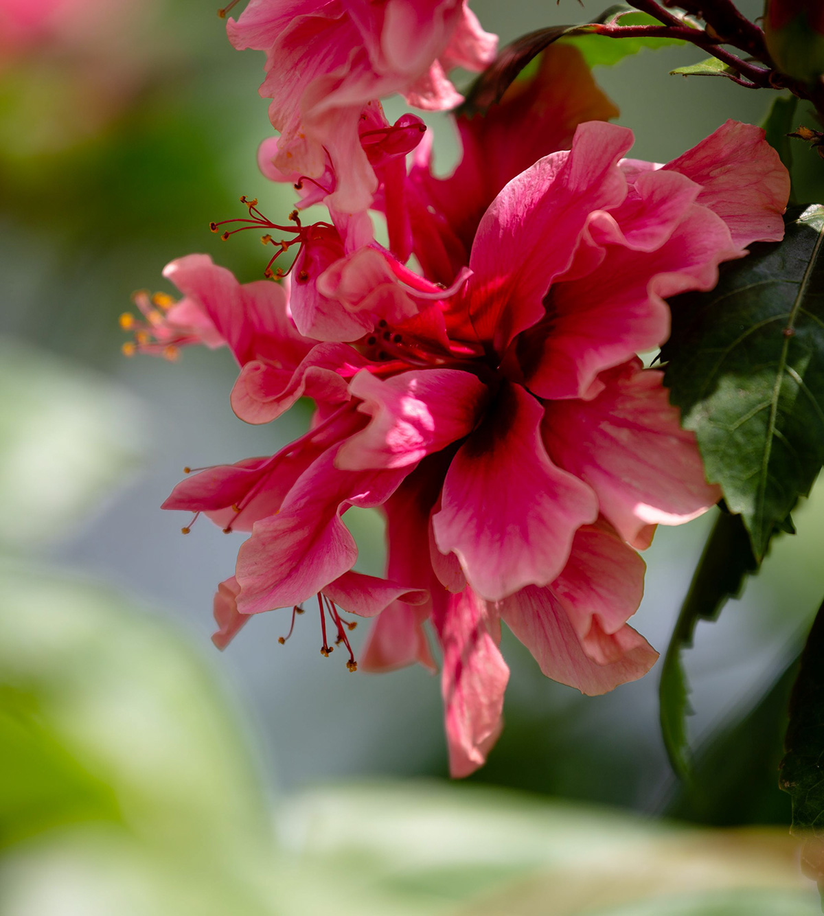 重瓣朱槿,原產于我國,為朱槿(扶桑)的變種,花大艷麗,四季常開,是優(yōu)美觀賞樹種,常栽培用作綠籬。(朱鮮艷 攝)
