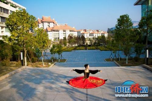 中國僑網(wǎng)4月17日電 在廈門大學嘉庚學院即將迎來建校15周年之際,該學院8位女大學生以自己的專業(yè)所長,為校慶獻上一份特別的禮物:在美麗的廈大嘉庚學院校園,或以練功服俏麗亮相,翩若驚鴻;或亭中曼舞,飛揚的綢帶迷醉眼眸;或騰躍桂花山,向著天空生長;或旋轉(zhuǎn)月亮橋,留下驚鴻一瞥……每一處風光創(chuàng)作一支舞蹈,15支舞蹈舞動在“嘉園”的15個角落,取名《15支“芳華”獻給15歲的你》。