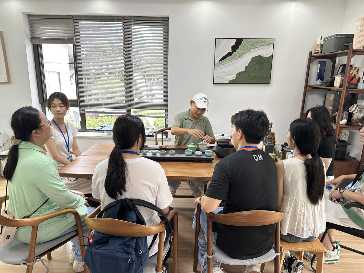 實踐隊在調研中,還與各界深入座談,探尋黃檗文化傳承路徑。LVE集團(中國)CEO傅偉玲結合跨文化貿易經驗指出,文化產品跨境流通是文明對話的紐帶,其傳播力比理論宣講更深遠。她鼓勵隊員將文化傳承與時代需求相結合。徑山文化研究者們則分享活化經驗:“徑山茶宴”結合文旅、康養(yǎng),通過復原儀式、開發(fā)研學路線煥發(fā)生機。這為黃檗文化傳播提供啟示——守護根基之余,需搭建當代對話平臺。
