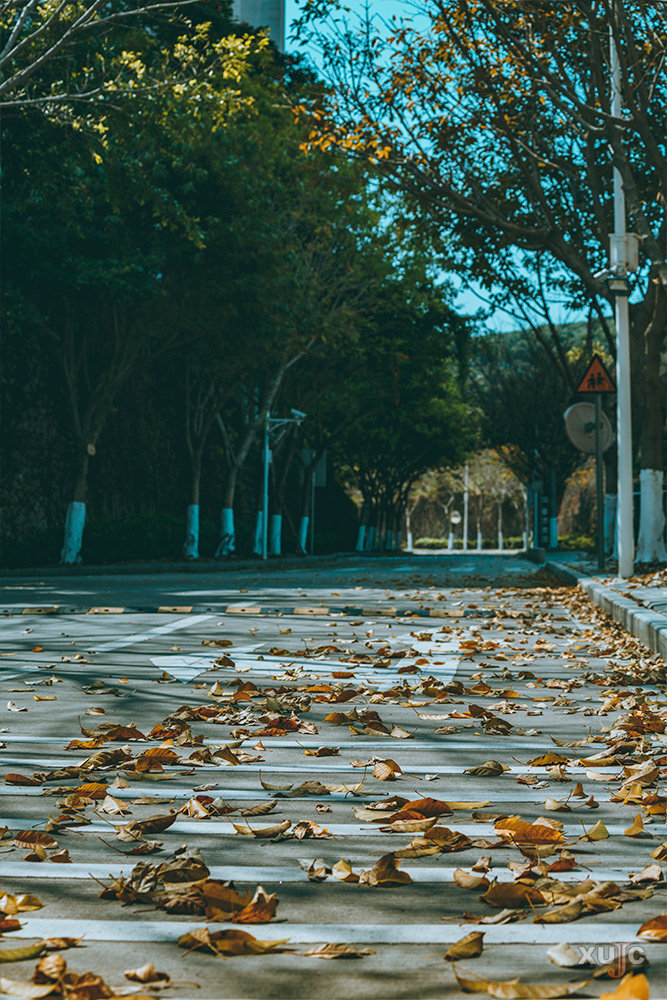 林蔭路上,輕舞的落葉紛飛