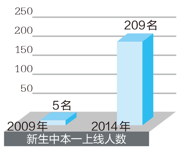 嘉庚學(xué)院的在校生不僅是“量”在增加,“質(zhì)”也在增加,一個(gè)標(biāo)準(zhǔn)是本一上線人數(shù),2009年,它招收新生中,本一上線人數(shù)是5名,到2014年,已經(jīng)是209名,五年間,增長了40倍。