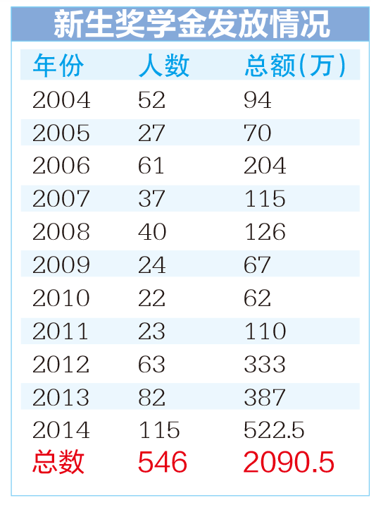 11年發(fā)了2000多萬新生獎(jiǎng)學(xué)金