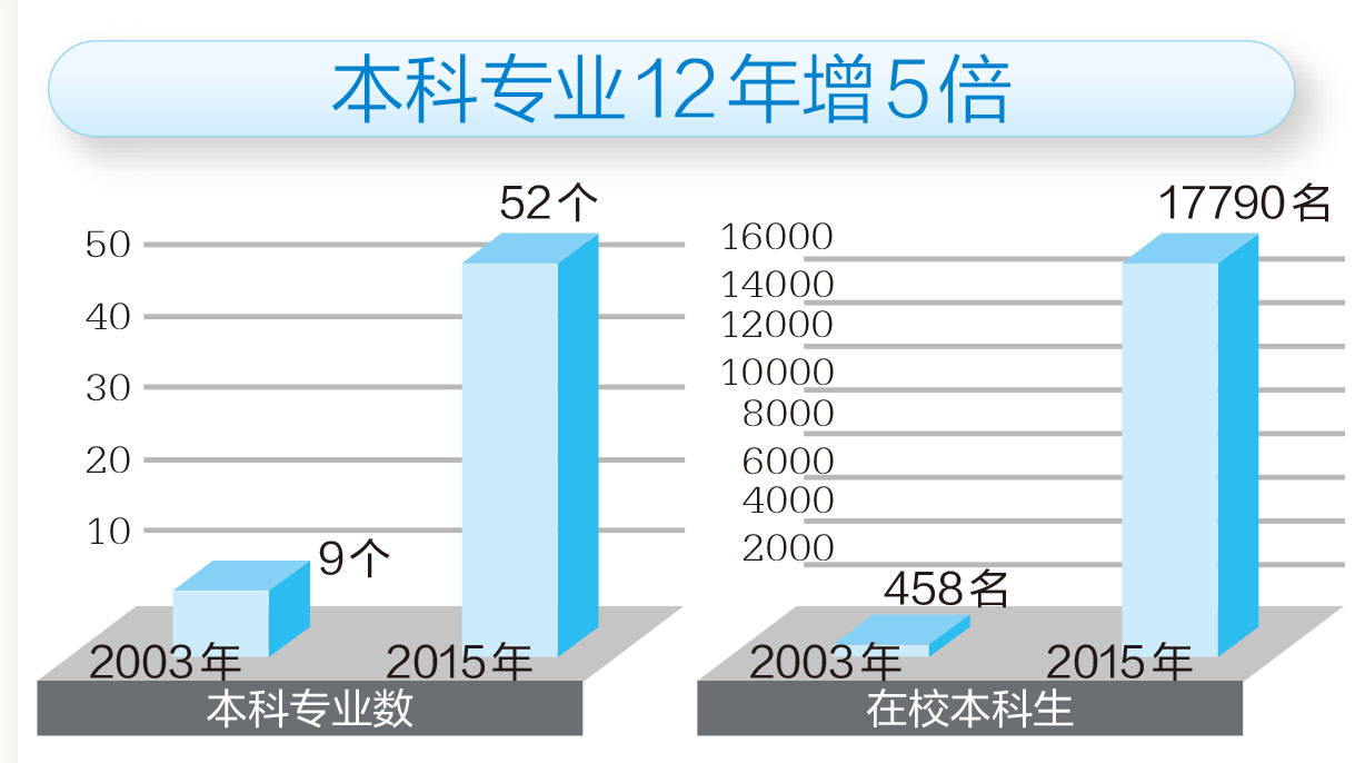 2003年剛成立時(shí),嘉庚學(xué)院僅有7個(gè)系、9個(gè)專業(yè),458名學(xué)生。2015年,它設(shè)有5個(gè)分院、8個(gè)獨(dú)立系、3個(gè)教學(xué)部、2個(gè)實(shí)踐教學(xué)訓(xùn)練中心和1個(gè)科研中心,52個(gè)本科專業(yè),79個(gè)專業(yè)方向,擁有在校本科生17790名、碩士研究生24名(與廈門大學(xué)聯(lián)合培養(yǎng))。12年間,嘉庚學(xué)院在校生增長了37倍。