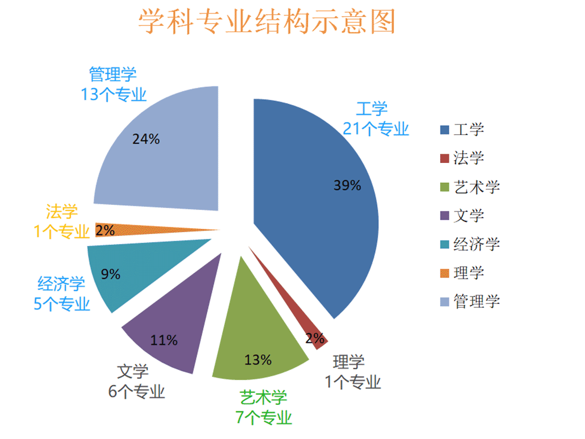 學(xué)校自創(chuàng)辦之日起就確立了“面向人才市場(chǎng)辦學(xué),通過(guò)市場(chǎng)謀求發(fā)展”的戰(zhàn)略思路,據(jù)此制定了學(xué)科專業(yè)建設(shè)總體規(guī)劃,明確了各個(gè)不同發(fā)展階段學(xué)科專業(yè)建設(shè)目標(biāo),努力構(gòu)建與國(guó)家和區(qū)域經(jīng)濟(jì)社會(huì)發(fā)展形勢(shì)相適應(yīng)的學(xué)科專業(yè)結(jié)構(gòu)體系。本科專業(yè)由2003年創(chuàng)辦初期的9個(gè)專業(yè)發(fā)展到如今擁有54個(gè)本科專業(yè),已初步形成門類多元、結(jié)構(gòu)合理、協(xié)調(diào)發(fā)展的學(xué)科專業(yè)體系,并形成了優(yōu)先發(fā)展應(yīng)用類學(xué)科專業(yè),重點(diǎn)發(fā)展工科專業(yè),適時(shí)發(fā)展?jié)M足戰(zhàn)略性新興產(chǎn)業(yè)人才需求的學(xué)科專業(yè),以及努力改革和發(fā)展傳統(tǒng)學(xué)科專業(yè)等鮮明的學(xué)科專業(yè)建設(shè)特色。與此同時(shí),學(xué)校以科學(xué)建構(gòu)符合學(xué)院“應(yīng)用型、復(fù)合型、創(chuàng)新型”人才培養(yǎng)目標(biāo)定位的學(xué)科專業(yè)人才培養(yǎng)方案為突破口,以全面落實(shí)教學(xué)改革與教學(xué)質(zhì)量工程建設(shè)為抓手,以形成一批突出實(shí)踐應(yīng)用、專業(yè)特色鮮明的學(xué)科專業(yè)為目標(biāo),堅(jiān)持動(dòng)態(tài)調(diào)整學(xué)科專業(yè),扎實(shí)推進(jìn)學(xué)科專業(yè)建設(shè),不斷提升和優(yōu)化學(xué)科專業(yè)品質(zhì),使學(xué)校的學(xué)科專業(yè)建設(shè)獲得鮮活的生命力,持續(xù)健康發(fā)展,學(xué)科專業(yè)整體實(shí)力明顯增強(qiáng)。