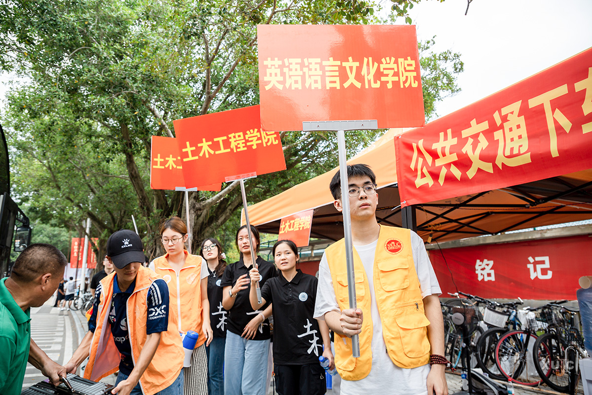 剛下車,便看見穿著各色志愿者服的學(xué)長學(xué)姐