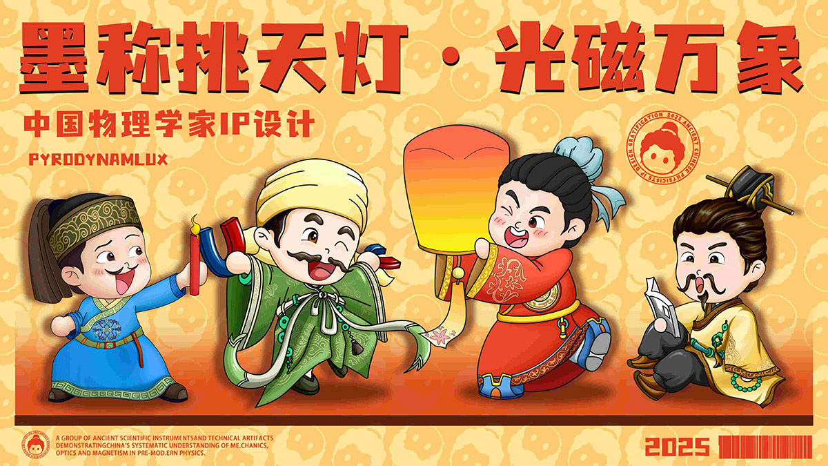樊佳昊、楊俐莎團隊則以《墨秤挑天燈·光磁萬象》為題,以“活化古籍”為核心,創(chuàng)新打造四大科學先驅(墨子、沈括、王充、趙友欽)的跨時空IP形象,將力學、熱學等典籍智慧轉化為兼具文化厚度與年輕活力的視覺符號。學生代表樊佳昊在領獎時談到:“我們希望通過設計,讓年輕人感受到中華科學基因的魅力,讓古籍中的智慧成為連接過去與未來的橋梁。”