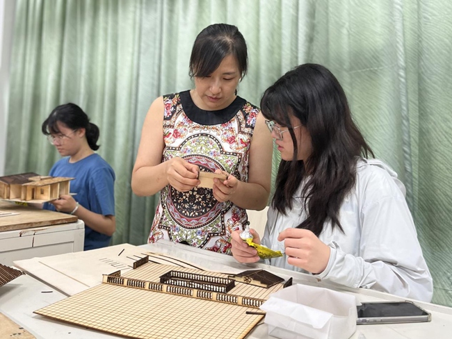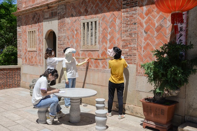 實踐團(tuán)隊以地域文化傳承為實踐主體,結(jié)合“設(shè)計賦能”專業(yè)特色,形成完整的“學(xué)、研、產(chǎn)”創(chuàng)新模式,有效推進(jìn)“設(shè)計下鄉(xiāng)”。同時,對當(dāng)?shù)貍鹘y(tǒng)房屋進(jìn)行數(shù)據(jù)整理與繪制,分組開展閩南古民居模型制作。