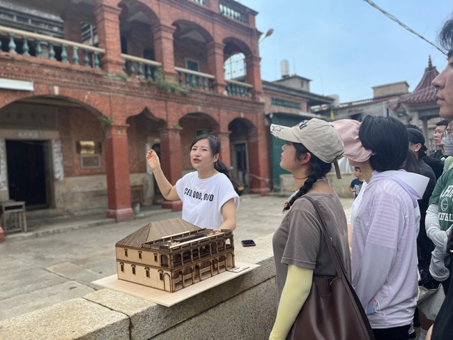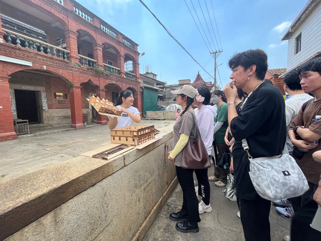 針對于團(tuán)隊學(xué)生專業(yè)的特色化的教育背景,張倩倩副教授就閩南傳統(tǒng)古村開展了生動的自然課堂,通過傳統(tǒng)建筑與地方文化的有機(jī)結(jié)合講解了地方文化,雙向促進(jìn)“高校←→鄉(xiāng)村協(xié)同美育”的社會實踐體驗。