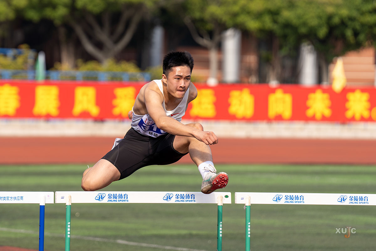 在校運會中,楊碩(右)多次獲得110米欄冠軍,并兩度打破該項目的校運會紀錄