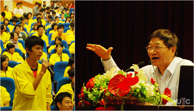 提問(wèn)環(huán)節(jié)中,面對(duì)學(xué)生們提出的諸如“都說(shuō)‘90后’是‘垮’大學(xué)的一代,院長(zhǎng)你是如何看待的呢?”“院長(zhǎng),您怎么看待大學(xué)生同居現(xiàn)象?”等等一個(gè)個(gè)“肆意妄為”的問(wèn)題,戴副院長(zhǎng)幽默、隨和地與同學(xué)們一起聊起來(lái),不時(shí)激起陣陣掌聲。