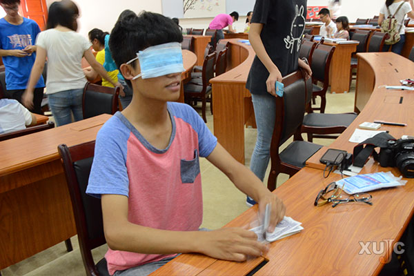 財(cái)政金融系學(xué)生會(huì)學(xué)術(shù)部部長(zhǎng)王清聰介紹點(diǎn)鈔大賽四大環(huán)節(jié)。第一關(guān)是基礎(chǔ)關(guān),點(diǎn)鈔比速度。誰先把一疊錢點(diǎn)完就算贏。第二關(guān)是限時(shí)1分鐘點(diǎn)鈔,以精確度為評(píng)判標(biāo)準(zhǔn)。第三關(guān)是識(shí)別各國(guó)貨幣,幾個(gè)小姑娘手里拿著外幣眉頭微蹙,正在努力地搜索記憶,辨認(rèn)貨幣。第四關(guān)是蒙眼識(shí)假幣,闖關(guān)人需要蒙著眼睛,在茫茫一疊真錢中找出一張假錢。