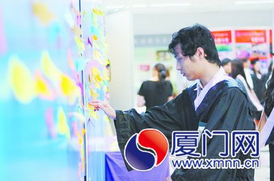 為了留下畢業(yè)生的足跡,廈門大學(xué)嘉庚學(xué)院特地制作了留言板,上面寫著畢業(yè)生對(duì)這所學(xué)校的眷念和感激。有畢業(yè)生說(shuō),看到這塊留言板,心里立即充滿一種溫暖的感覺(jué)。