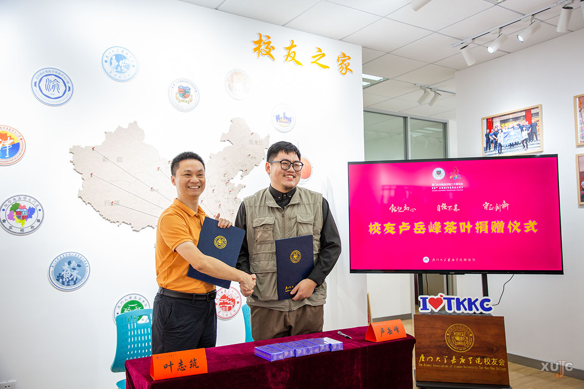 2023年10月,我校喜迎建校20周年,設(shè)計(jì)與創(chuàng)意學(xué)院2020屆校友、蟠龍澗巖茶品牌總監(jiān)盧岳峰(外號(hào):二狗)專門設(shè)計(jì)“嘉庚二十周年校慶品鑒茶”,并獻(xiàn)禮茶葉兩萬袋,與師長、回校校友們分享。