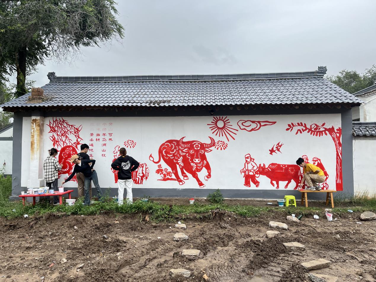 活動中,實踐隊隊員通過查閱相關(guān)資料、與當?shù)乩宵h員交流等方式,深入了解閩寧協(xié)作歷史,并將這些內(nèi)容融入鄉(xiāng)村微景觀設(shè)計中。從福建的土樓到寧夏的六盤山,從福建的波濤海浪到寧夏的剪紙藝術(shù),大家以畫筆為媒,通過藝術(shù)磚砌和墻繪的形式,展現(xiàn)閩寧協(xié)作的感人故事。
