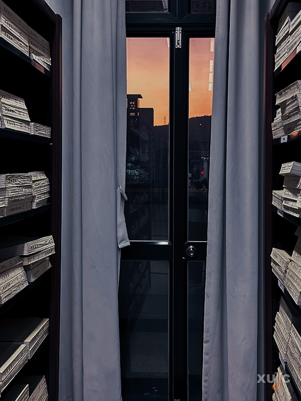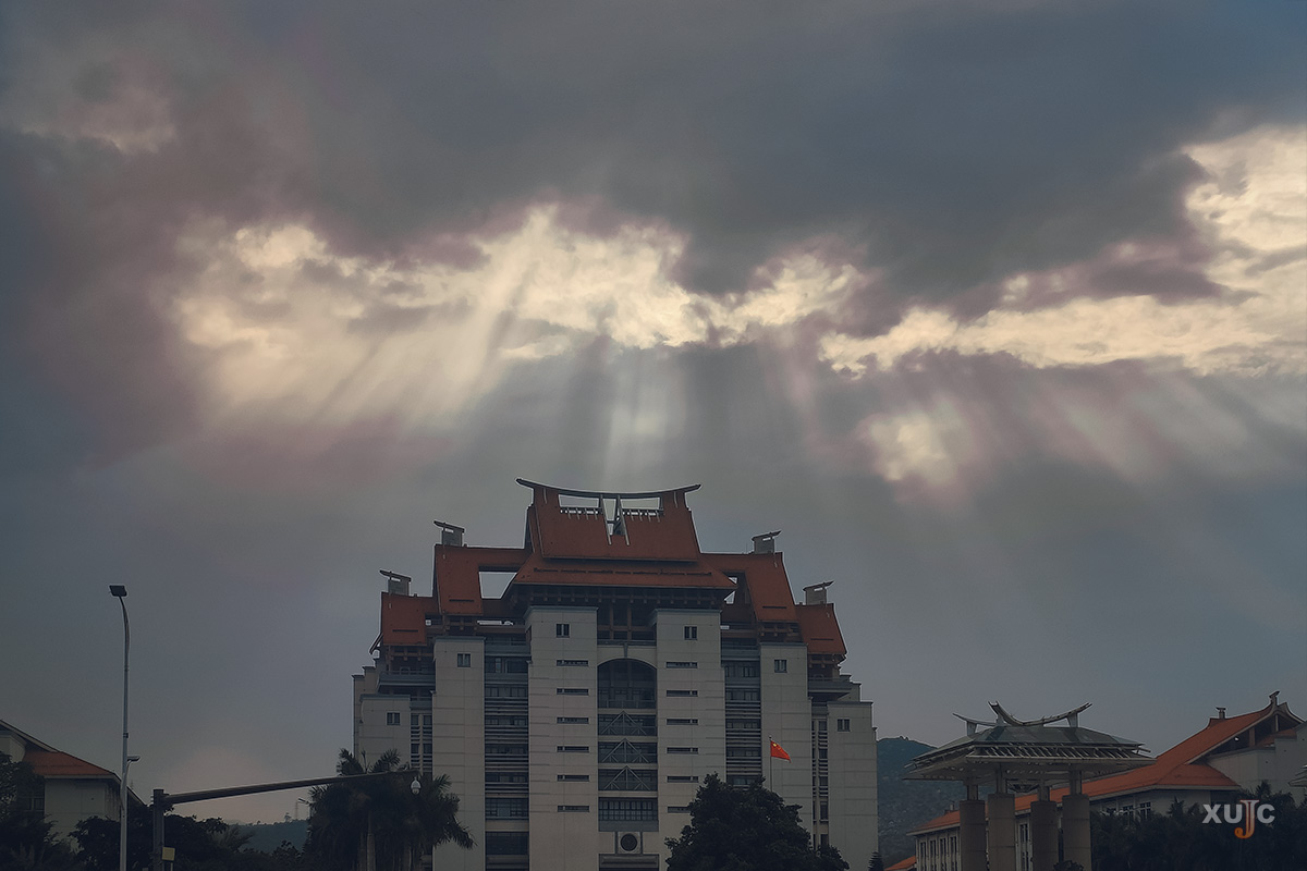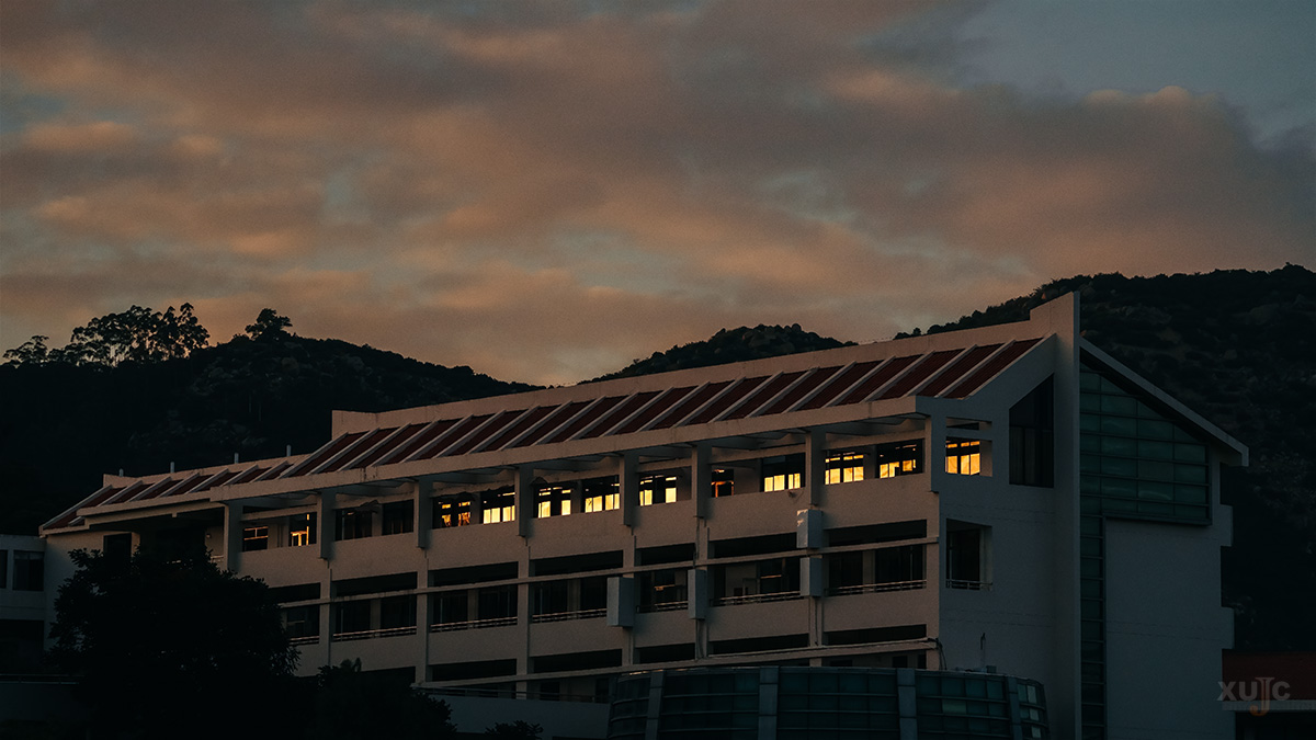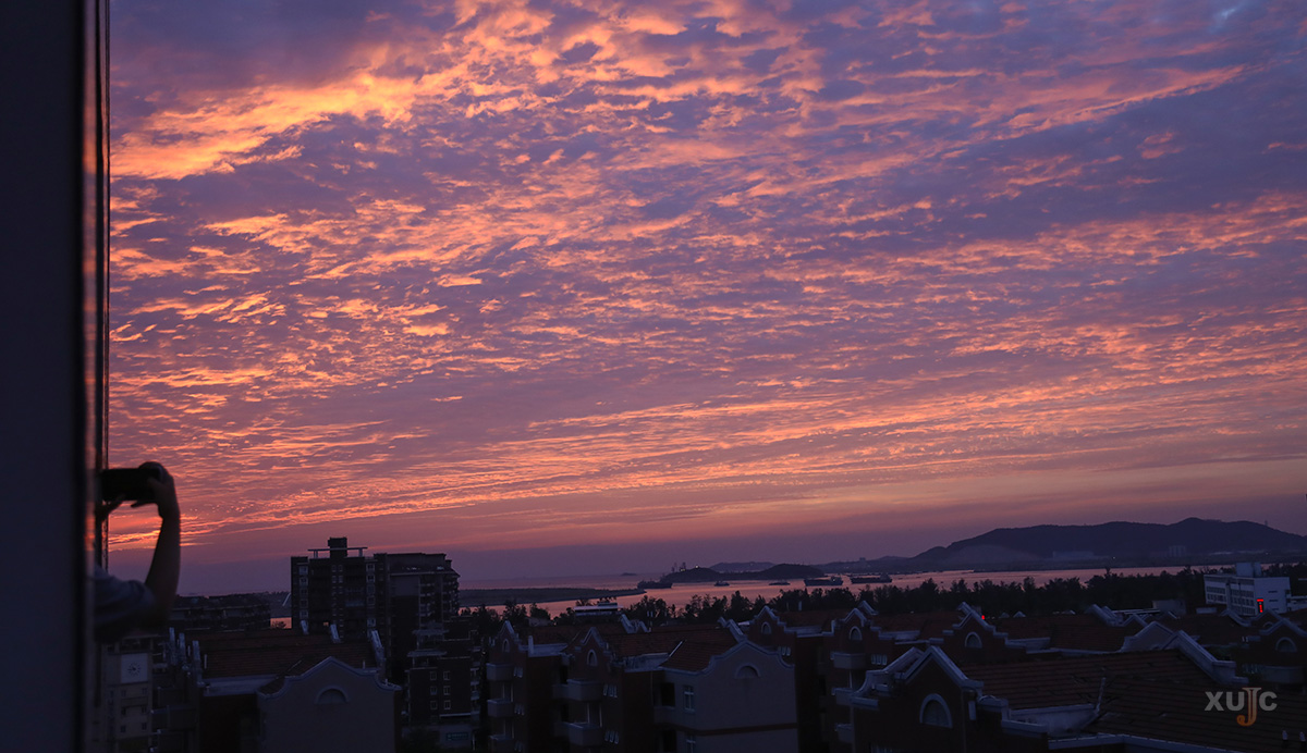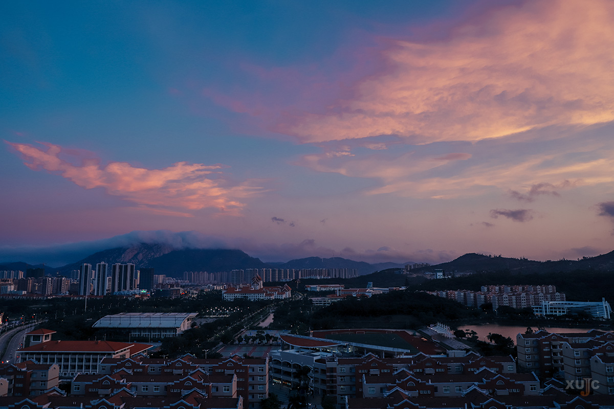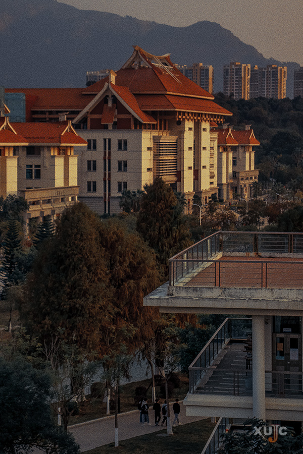 對面的教學(xué)樓也恰巧落滿霞光