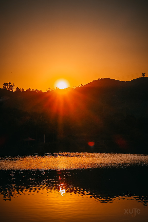 夕陽陷落,棲霞霞散,靜湖泛清波