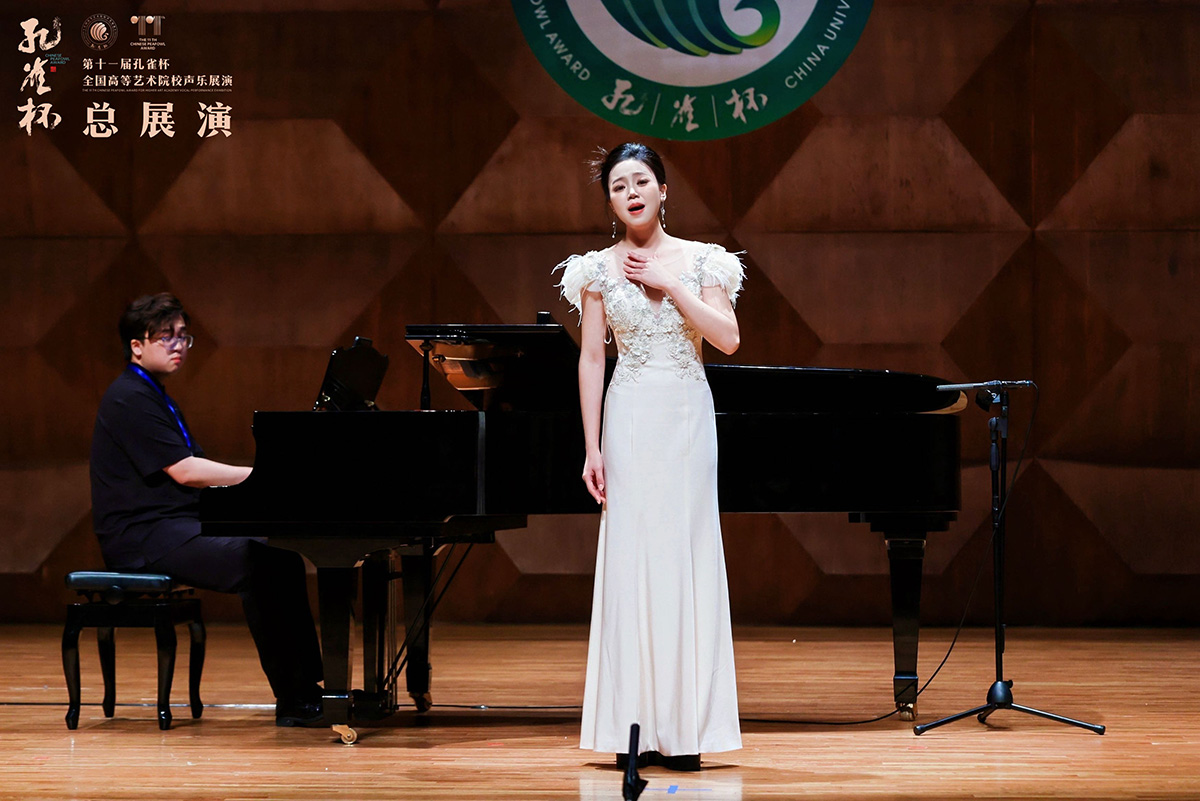 “孔雀杯”全國高等藝術(shù)院校聲樂展演及系列活動是由中國聲樂家協(xié)會與多所高等藝術(shù)院校聯(lián)合發(fā)起舉辦的大規(guī)模、高規(guī)格、專業(yè)層次高的聲樂展演及學(xué)術(shù)交流活動。本屆展演匯聚了來自全國及世界各地300多所高校的近3000名師生同臺競技。經(jīng)過個人預(yù)演、展演、總展演三輪比拼,評出各個選項。