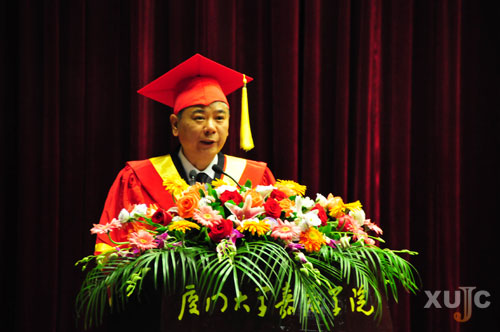 在這個(gè)綠樹(shù)成萌、充滿生機(jī)的仲夏,一年中校園里最美的季節(jié),我們?cè)诖讼嗑鄄⒁月≈氐牡涠Y送別光榮的你們——2011屆全體畢業(yè)生。鳳凰花開(kāi)兩季,一季新生來(lái),一季老生走,時(shí)光在如此這般的循環(huán)往復(fù)中流逝,依稀還記得你們?nèi)雽W(xué)時(shí)新鮮興奮的面孔,轉(zhuǎn)眼間,離別就近在眼前。對(duì)于離別,國(guó)人講究“歡送”,因而傷感不是今天的主題,榮耀、祝福和感恩才是今天的主題。在此,我謹(jǐn)代表廈門大學(xué)嘉庚學(xué)院祝賀你們順利完成學(xué)業(yè),并祝福你們?cè)谖磥?lái)的人生道路上開(kāi)拓屬于自己的精彩。