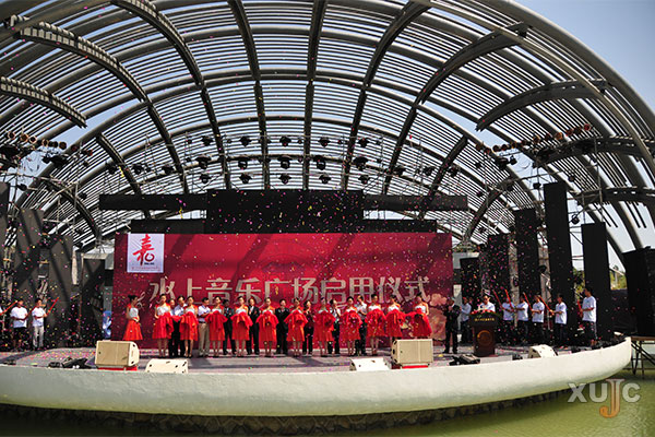 圖為水上音樂(lè)廣場(chǎng)剪彩儀式