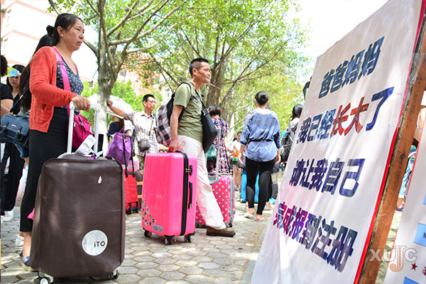 今年,我院共有571名老生參加了志愿者活動。在報到當天,全程都有志愿者引導,行李比較多的同學,還有志愿者幫忙送到宿舍。財政金融系的詹茗琬是交通組的志愿者。當天早上七點半,她就到崗了。雖然天氣炎熱,但志愿者們卻不喊累。詹茗琬笑著說:“以前我們被幫助過,現(xiàn)在輪到我們幫助學弟學妹了。能傳承這種志愿精神,我覺得很快樂。”