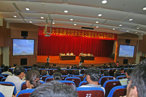 6月17日,廈門大學(xué)嘉庚學(xué)院舉行一年一度的“校園開放日”。作為本次活動(dòng)亮點(diǎn)的“家長論壇暨家長與院長對話會(huì)”在廈門大學(xué)漳州校區(qū)主樓群3號(hào)樓的多功能大報(bào)告廳如期舉行。嘉庚學(xué)院副院長戴一峰教授、黨總支副書記張必華、實(shí)習(xí)與就業(yè)服務(wù)中心咸冬英副主任、教務(wù)部部長孟丹老師以及來自法學(xué)院、環(huán)境科學(xué)與工程系、會(huì)計(jì)系與財(cái)政金融系的四位學(xué)生家長代表出席了此次會(huì)議。會(huì)議吸引了無數(shù)學(xué)生、在校生家長以及考生家長的參加。