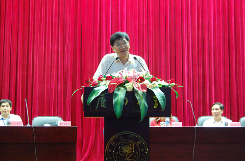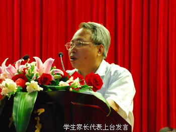 05級(jí)法學(xué)專業(yè)的學(xué)生家長黃志成先生首先發(fā)言。他認(rèn)為培養(yǎng)孩子自主學(xué)習(xí)、自我管理的能力猶為重要。通過對當(dāng)今就業(yè)現(xiàn)象和社會(huì)現(xiàn)象對學(xué)生產(chǎn)生的影響方面,分析家、校對培養(yǎng)孩子在學(xué)習(xí)和生活上獨(dú)立自主的重要性,并向?qū)W校提出辦學(xué)建議。