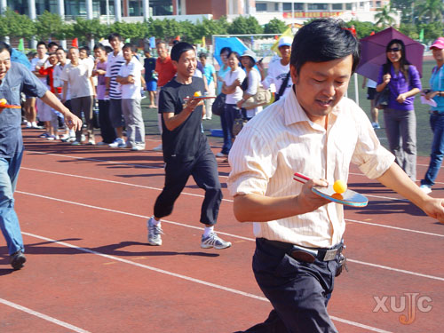 11月1日上午,教工男子組、女子組乒乓球托跑決賽在北區(qū)田徑場舉行,教務(wù)部劉翔老師和英語系的郭潔老師分獲冠軍。