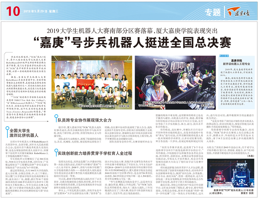 廈門大學(xué)嘉庚學(xué)院機器人戰(zhàn)隊“TCR”周康妹 攝