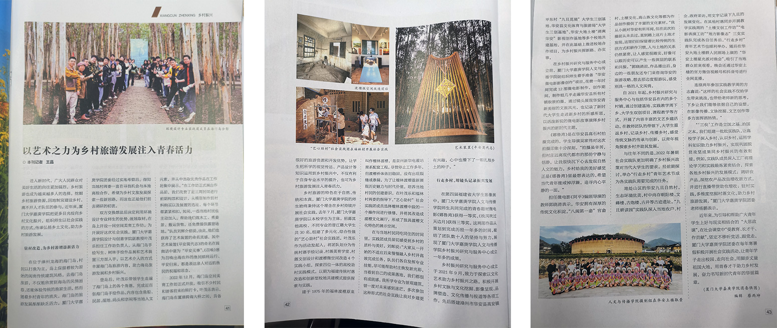 自2021年起,鄉(xiāng)村振興研究與服務(wù)中心與包括華安縣在內(nèi)的多個(gè)村鎮(zhèn),通過(guò)創(chuàng)建基地、實(shí)踐教學(xué)周下鄉(xiāng)、大學(xué)生雙創(chuàng)項(xiàng)目、課程教學(xué)等方式,開(kāi)展了內(nèi)容豐富的文藝鄉(xiāng)建活動(dòng)。在教師團(tuán)隊(duì)的帶領(lǐng)下,大學(xué)生重返鄉(xiāng)村、記錄鄉(xiāng)村、傳播鄉(xiāng)村,感受傳統(tǒng)文脈的傳承與創(chuàng)新,以青年視角探索鄉(xiāng)村并助其發(fā)展。