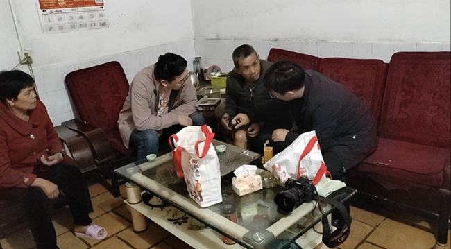 近日,劉勝(右一)與公益組織到南靖縣看望肖財(cái)金的父母。受訪者供圖