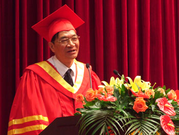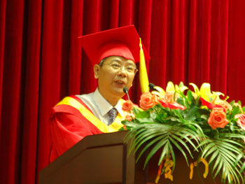 潘世墨副校長代表廈門大學(xué)致辭。他對即將畢業(yè)的2007屆411名畢業(yè)生表示最熱烈的祝賀和最美好的祝福。潘副校長充分肯定了首屆畢業(yè)生對于嘉庚學(xué)院,甚至是對于廈門大學(xué)的重要意義。他對2007屆畢業(yè)生表達(dá)了三點(diǎn)希望,希望同學(xué)們把嘉庚精神即愛國精神帶到以后的學(xué)習(xí)、工作中去;希望同學(xué)們保持一顆感恩的心,不忘曾經(jīng)對自己有過幫助的人;希望同學(xué)們畢業(yè)后不忘母校的培養(yǎng)之恩,將努力工作作為對學(xué)校的回報(bào)。最后,潘副校長祝2007屆畢業(yè)生揚(yáng)起理想的風(fēng)帆,乘風(fēng)破浪,順利到達(dá)理想的彼岸。