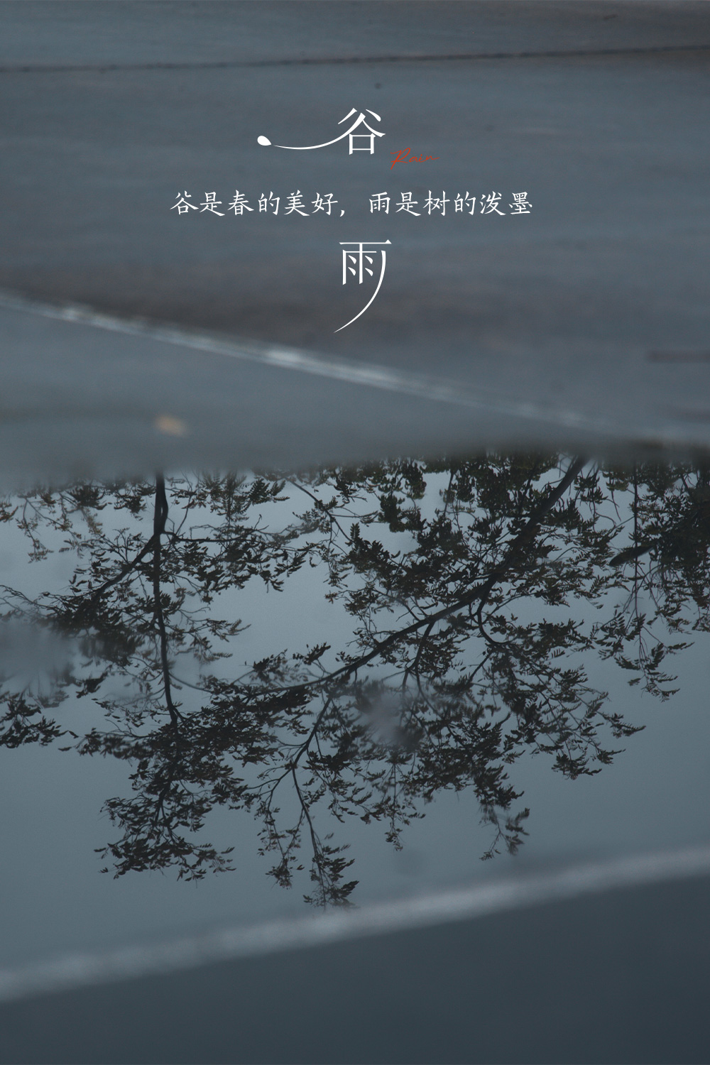 雨水在低洼處成鏡,樹木在其中倒影成畫