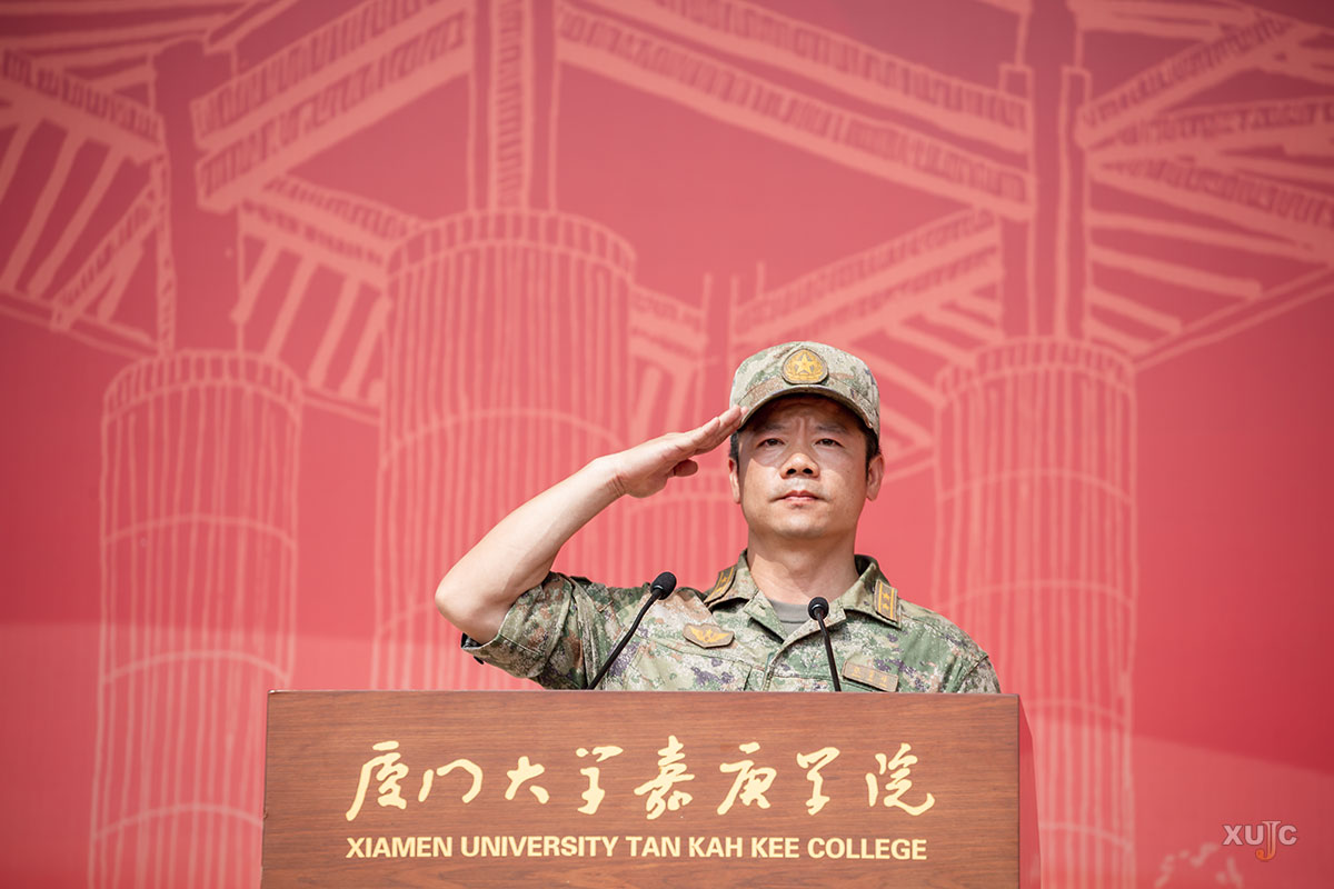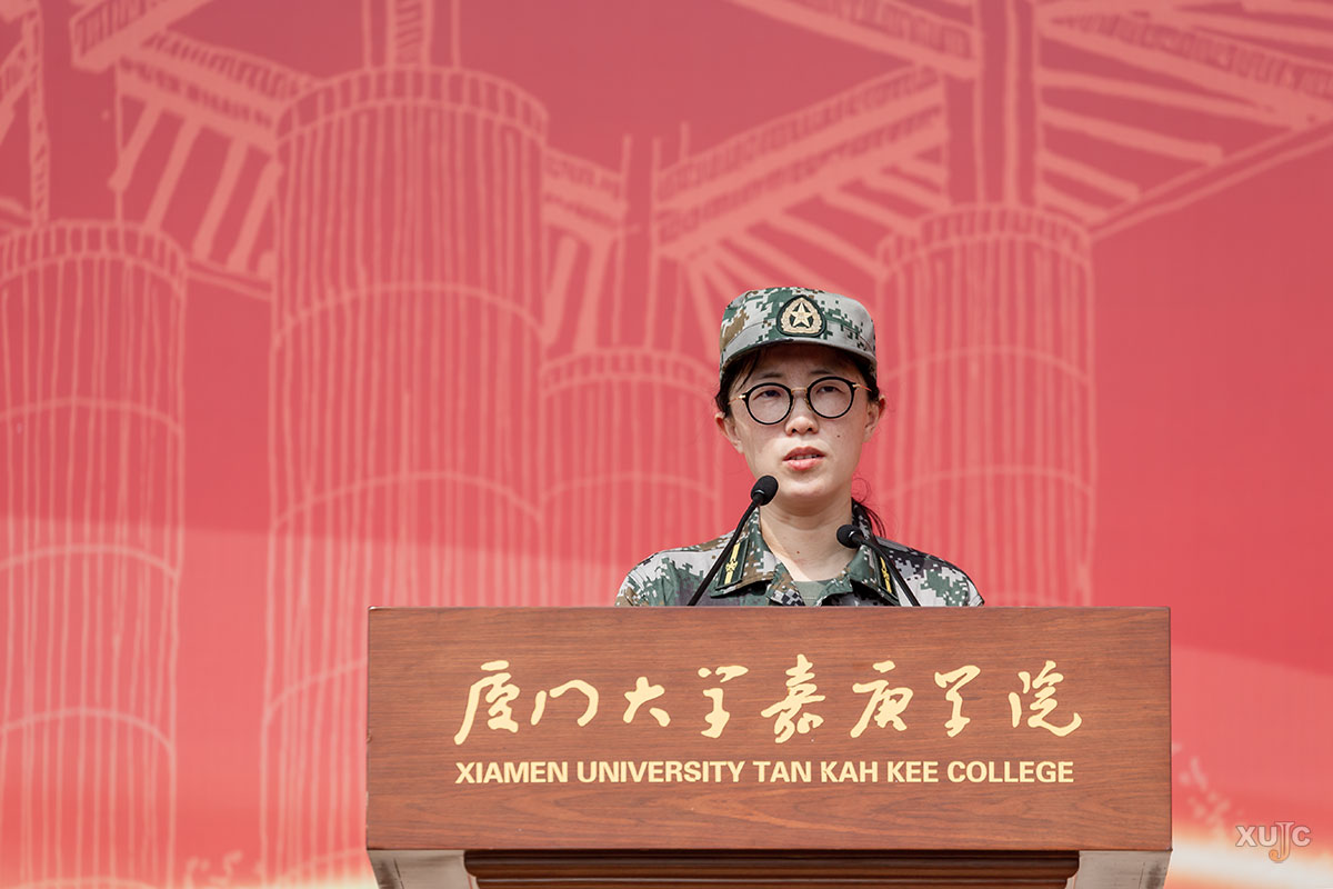 廈門大學(xué)嘉庚學(xué)院院長助理、學(xué)生軍訓(xùn)工作領(lǐng)導(dǎo)小組副組長、軍訓(xùn)團(tuán)政委姚祖嬋宣布2024級新生軍訓(xùn)團(tuán)機構(gòu)編成。
