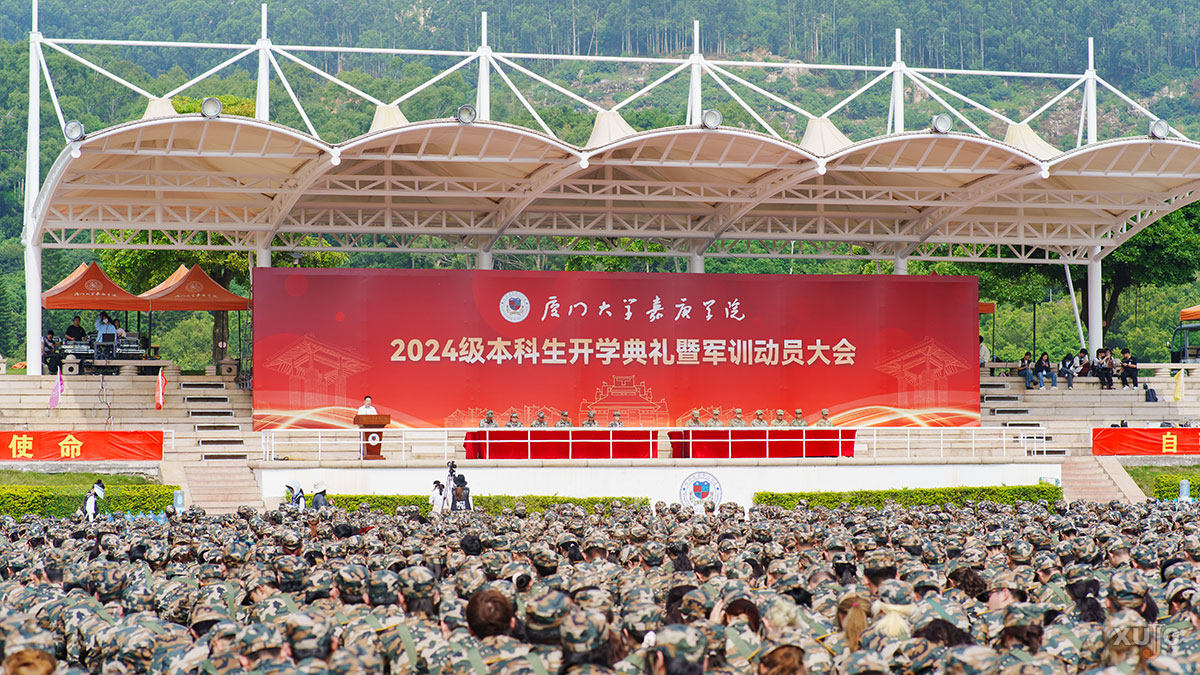 8月26日上午,廈門大學(xué)嘉庚學(xué)院2024級新生軍訓(xùn)動員大會在北區(qū)田徑場舉行。