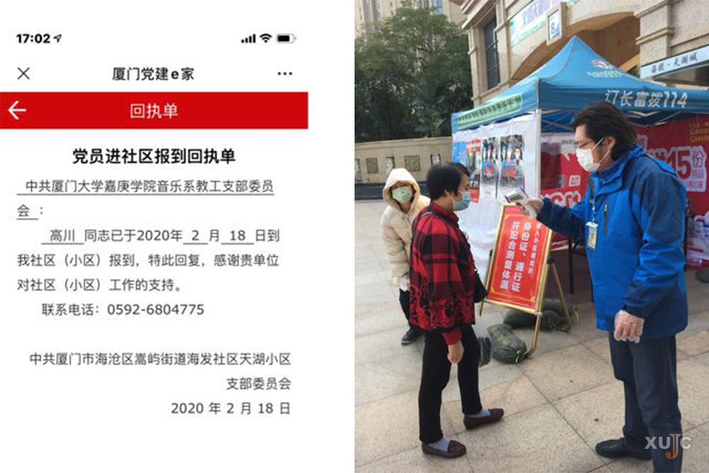 在疫情防控的關(guān)鍵時(shí)期,高川積極響應(yīng)廈門大學(xué)黨委組織部/黨建辦向全校共產(chǎn)黨員發(fā)出開展“社區(qū)防疫 黨員先行”主題志愿服務(wù)的倡議,積極投身社區(qū)疫情防控工作,為社區(qū)提供志愿服務(wù)。