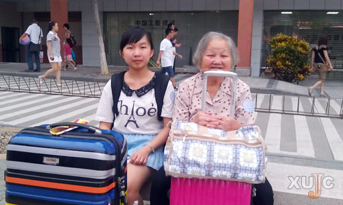 財政金融系新生陳靈芯的奶奶已經(jīng)81歲了,新生報到那天,她陪著孫女從三亞乘坐飛機(jī)、渡過輪渡、踏上校車來到了這里。